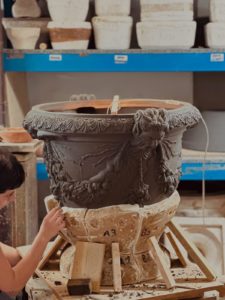 La terracotta nasce come un impasto di argilla morbida, malleabile e di colore grigio, una materia viva che permette al vasaio di modellarla con facilità. Nelle nostre lavorazioni, l’argilla viene inserita manualmente all’interno di stampi in gesso, realizzati come negativi del prodotto finale. Grazie a tecniche specifiche e all’esperienza dei nostri artigiani, l’impasto assume progressivamente la forma desiderata.
